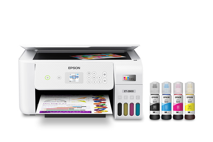 Inkjet printer with refillable ink tanks. Used for stickers, print-then-cut projects, labels, and photos. Cartridge-free design saves money on crafting.